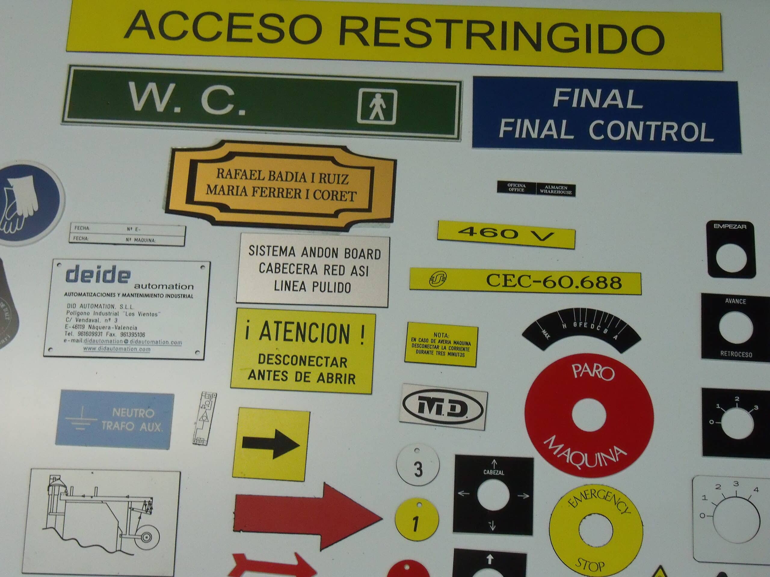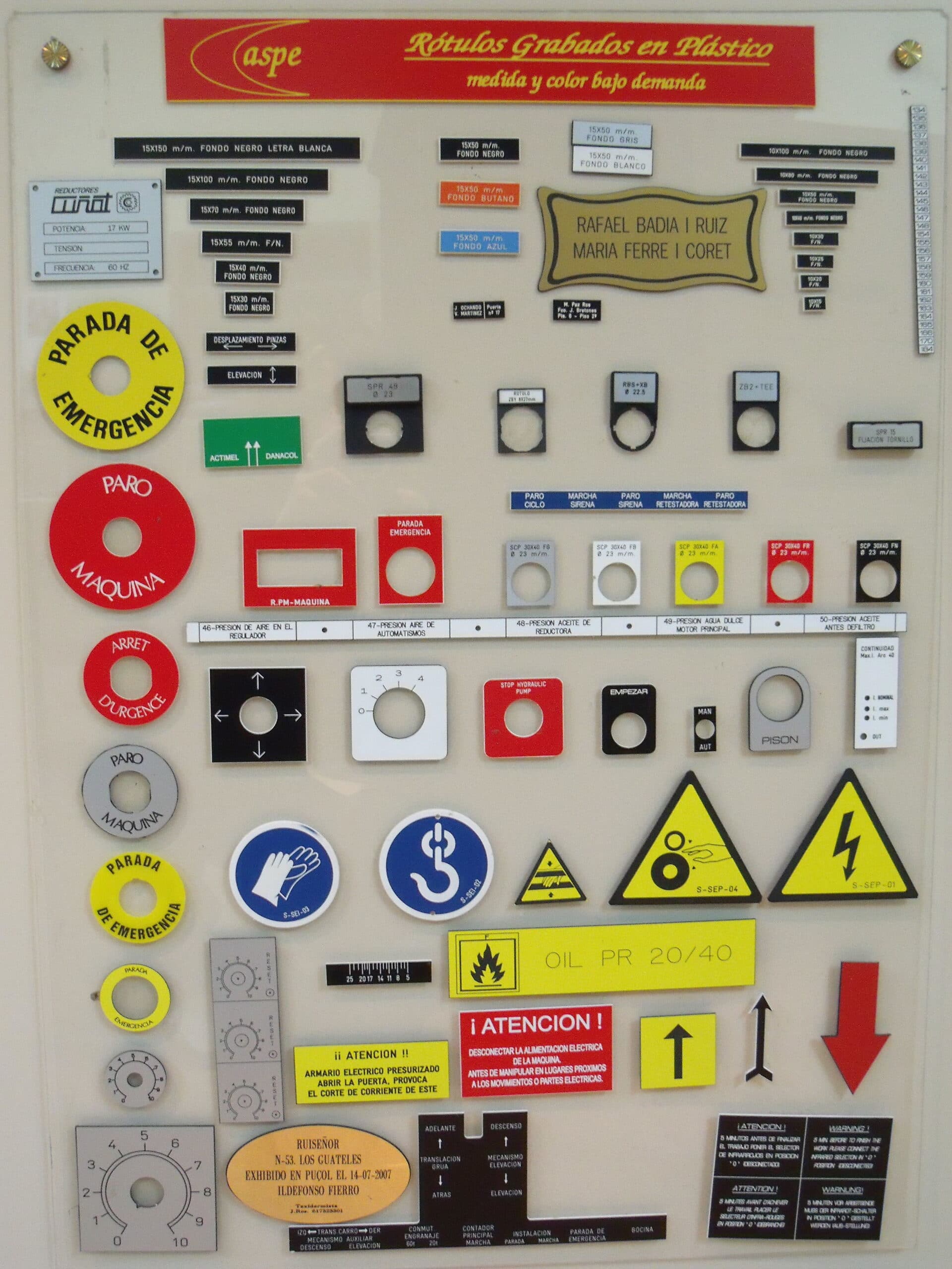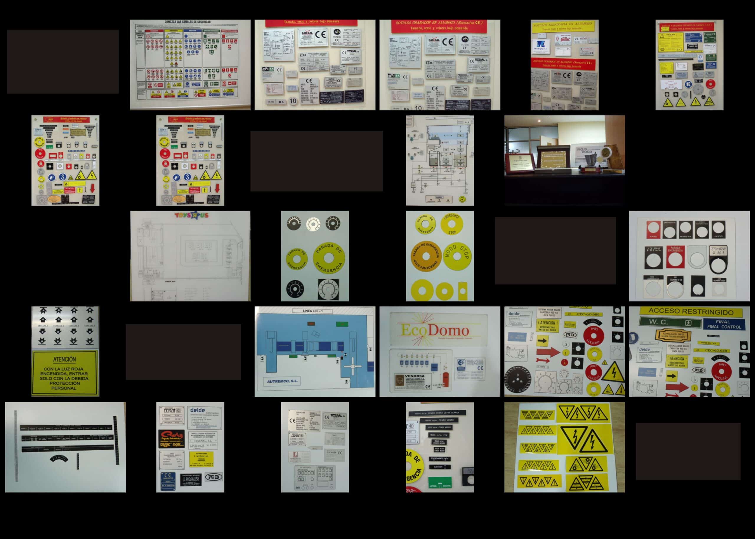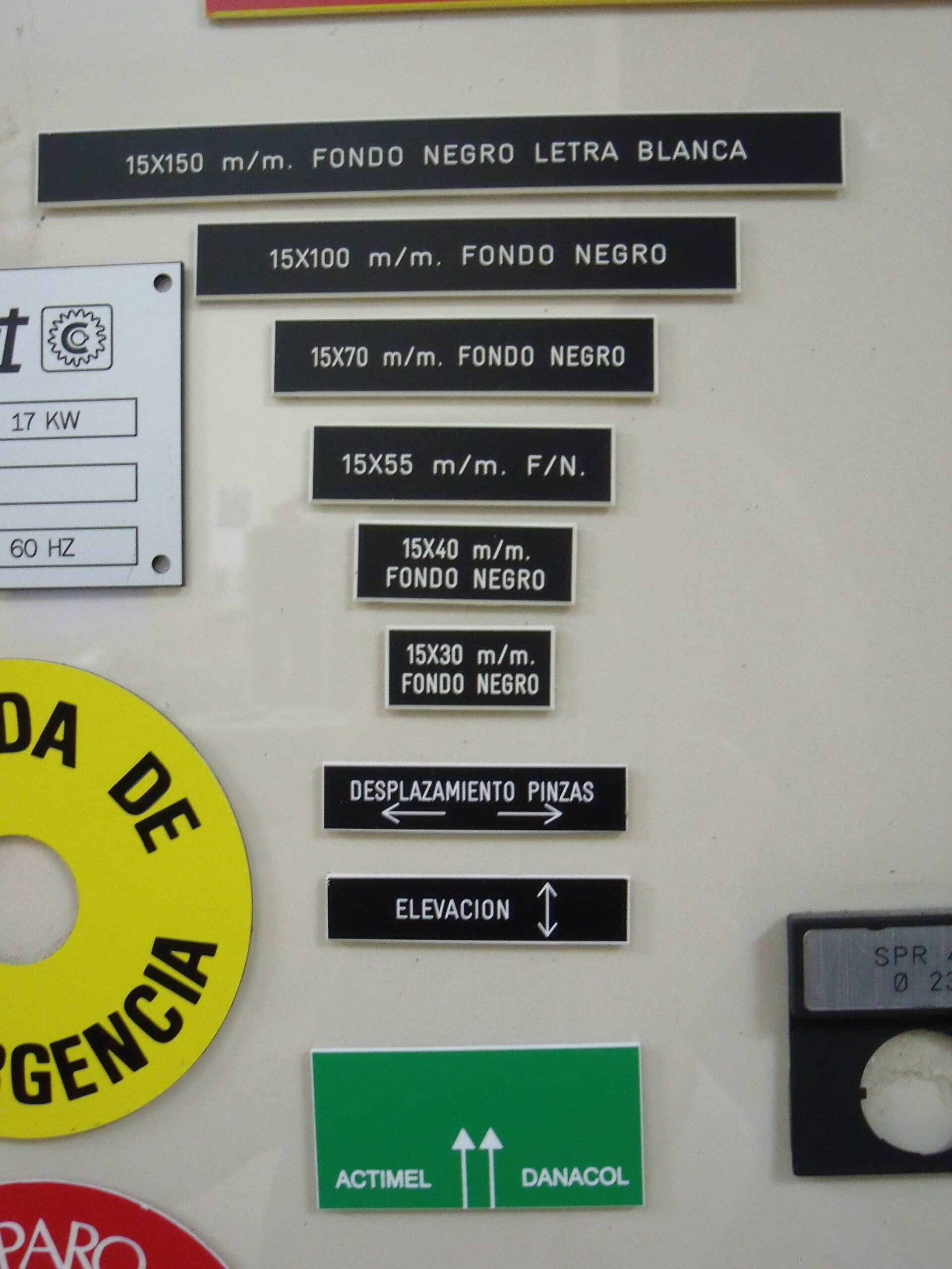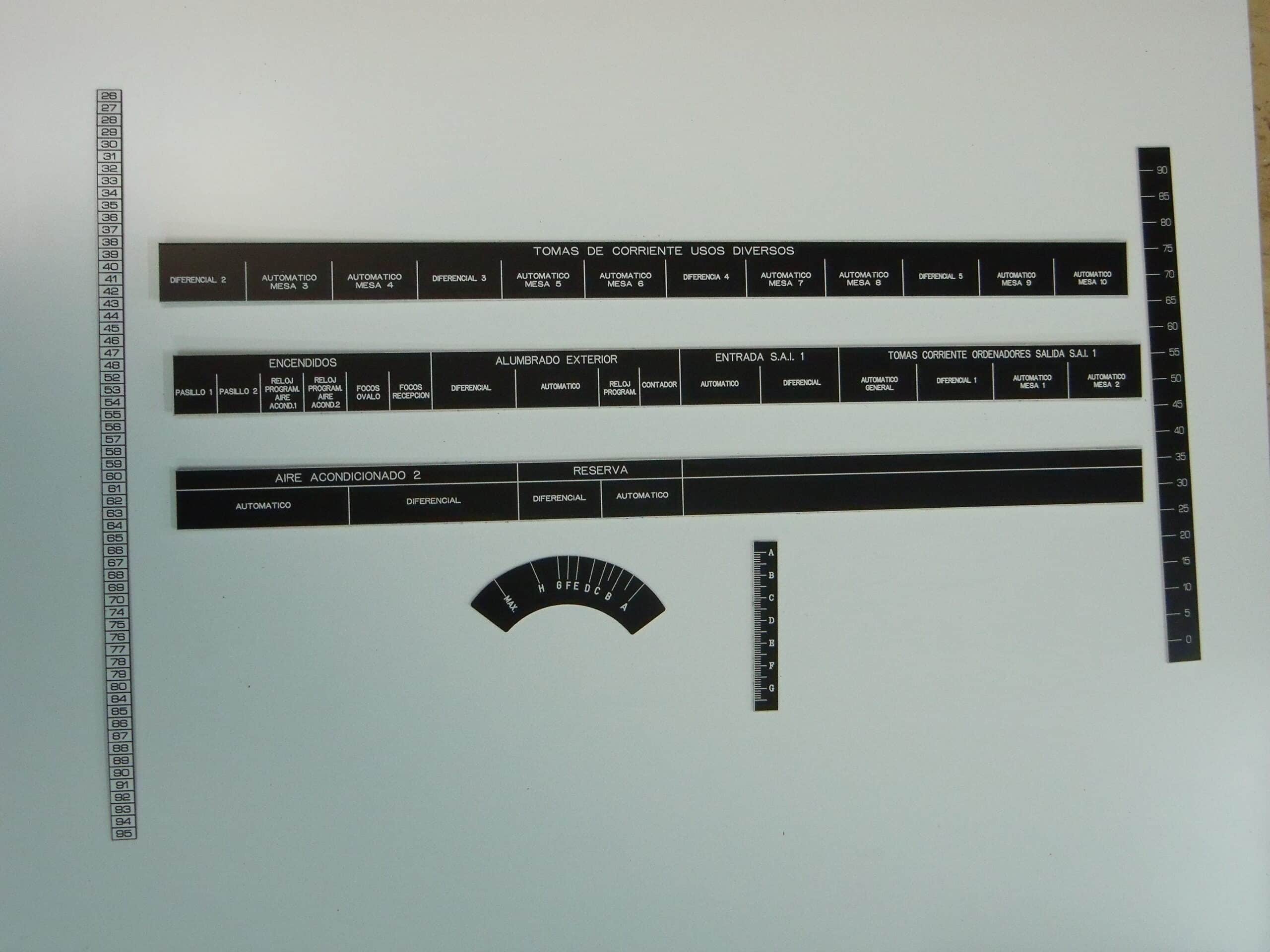 Con este material se pueden grabar todo tipo de placas, principalmente de tamaño pequeño y mediano. Placas para buzones, puertas, llaveros, señalización modular, óvalos y círculos numerados, directorios, cuadros eléctricos, identificación personal, fichas numeradas, botoneras, carteleras, maletas, butacas, letreros de pisos, letras y números recortados, planos de orientación para establecimientos hoteleros, militares, etc.