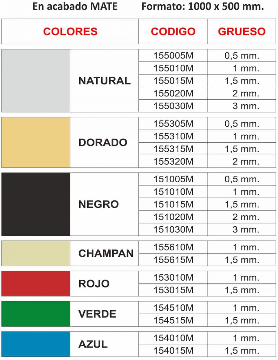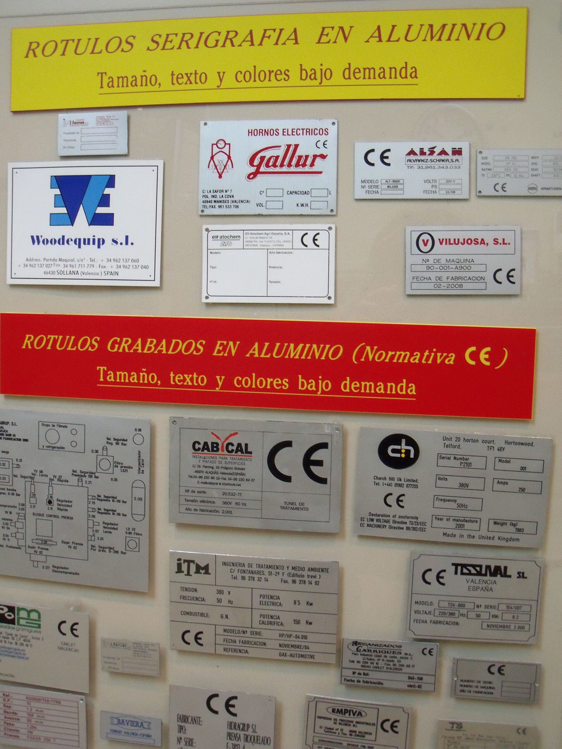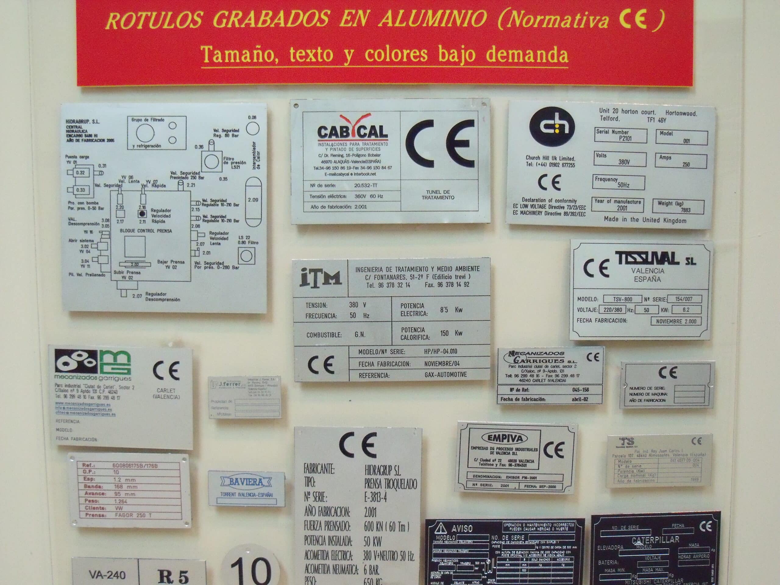 Con este material se pueden fabricar y grabar todo tipo de placas, pequeñas, medianas y grandes. Placas para puertas, buzones, industria, hoteles, llaveros, profesionales, círculos, óvalos, fichas, letreros de pisos, letras y números, paneles de mando, cuadros sinópticos, náutica, aeronáutica, ascensores, características, ferrocarriles, frontales, funerarias, utillaje, remolques, etc.