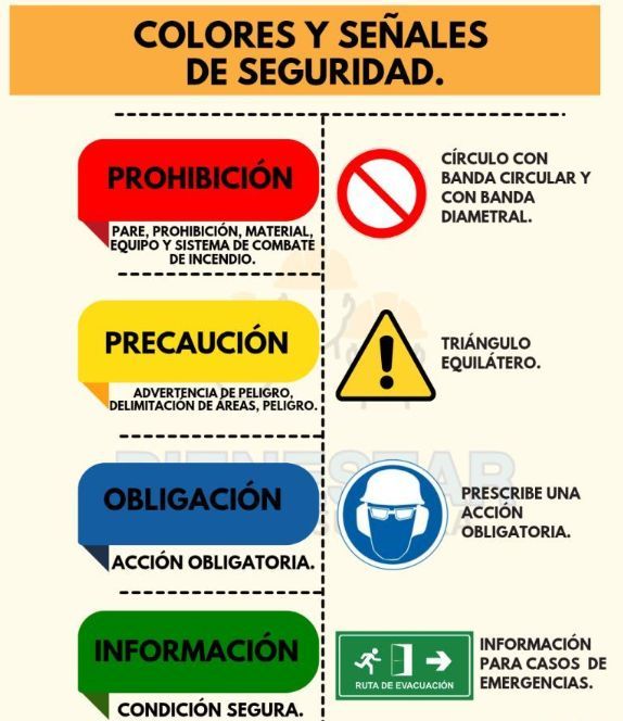 En cuanto a las características o significados de cada color de las señales de seguridad, aquí te los detallamos: