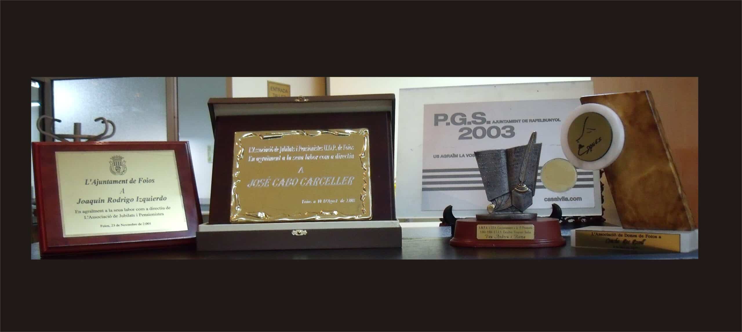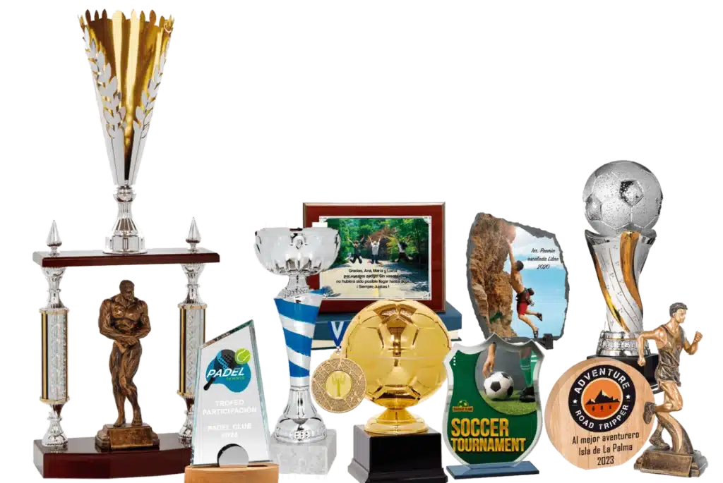 Tenemos un amplio catalogo especializado en Placas de Homenaje, Medallas Deportivas y a su vez disponemos de todo tipo de material dedicado a Trofeos, Copas, Resinas, Cristales, y Accesorios.